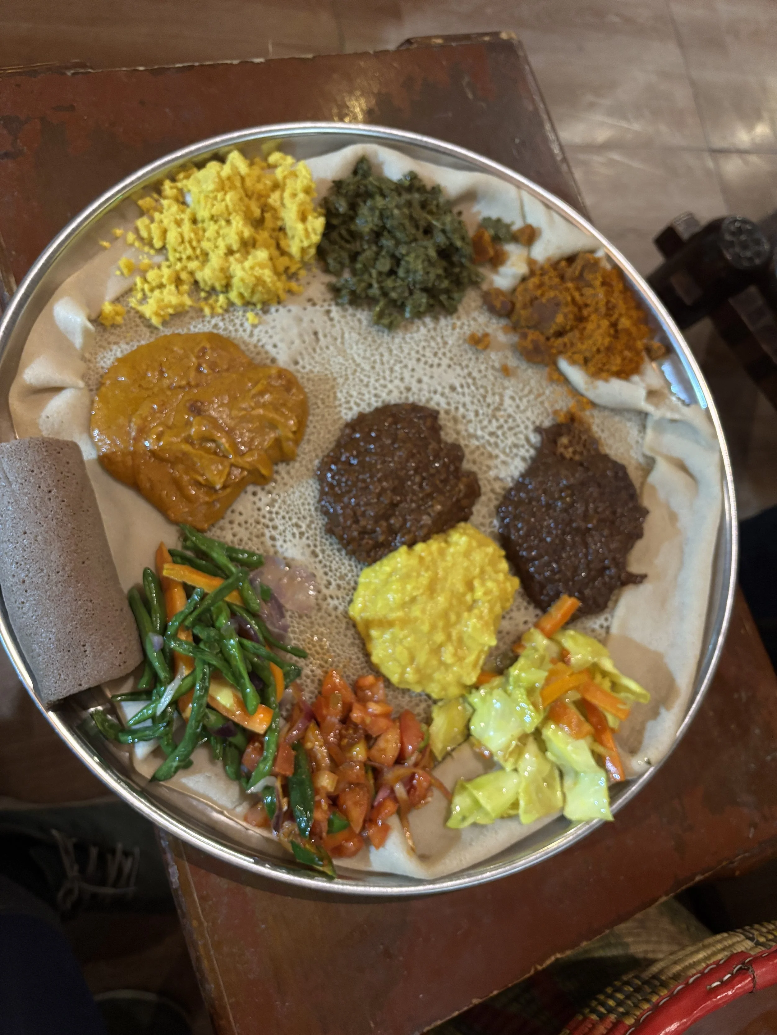 My last evening in Addis, I caught a solo ride in a bajaj into town. Little yellow, green, and red flags lined the roads ahead, remnants from Timkat. This particular bajaj caught my eye for one reason only — a massive fading Tupac poster covered the entire back panel. When I asked my driver what kind of music he liked, he grinned, cranked the volume, and to my surprise, queued up some Nicki Minaj.